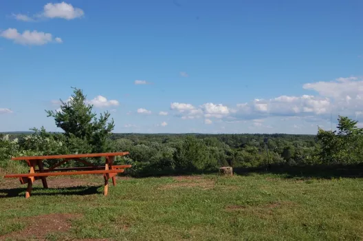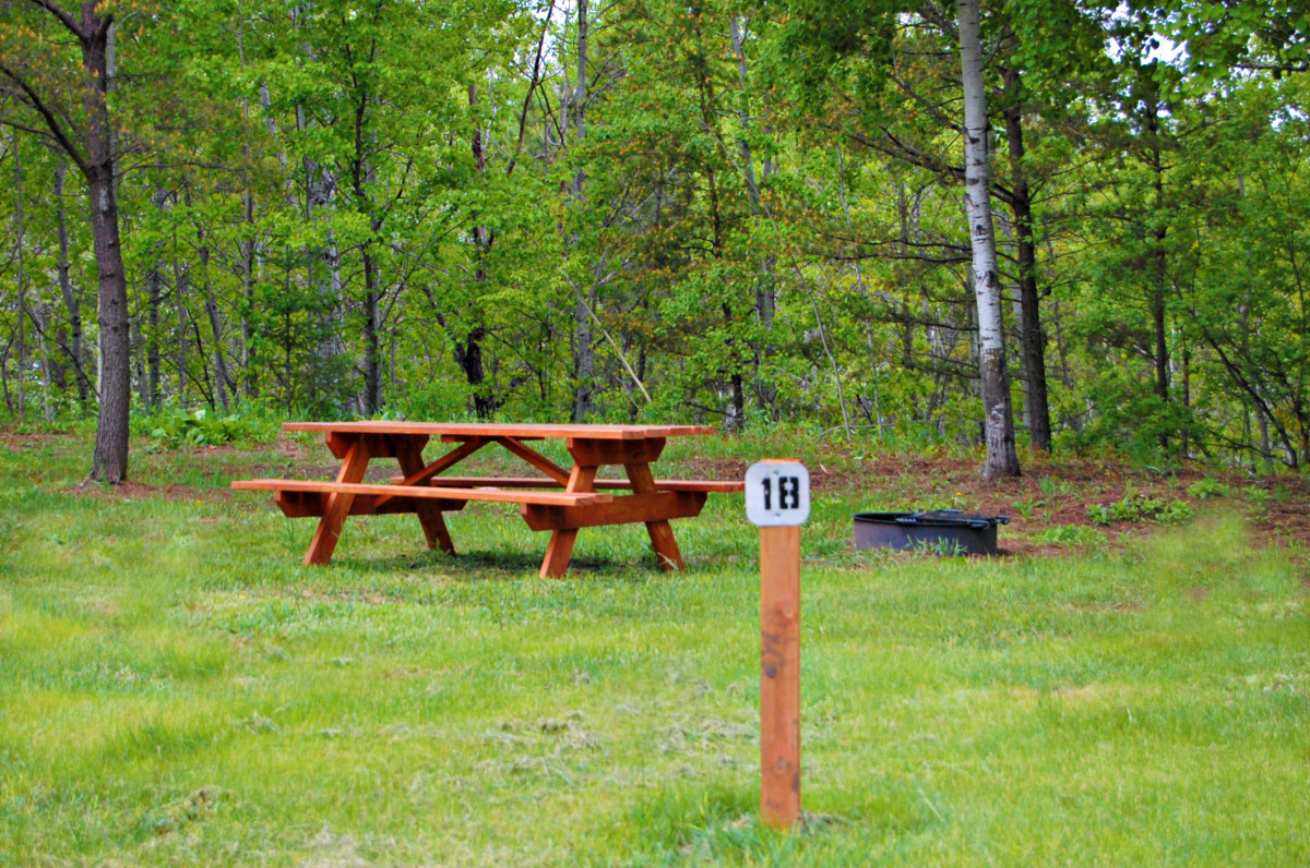 - Each cabin, furnished tent, and campsite includes a picnic table and fire ring with a cooking grate.
