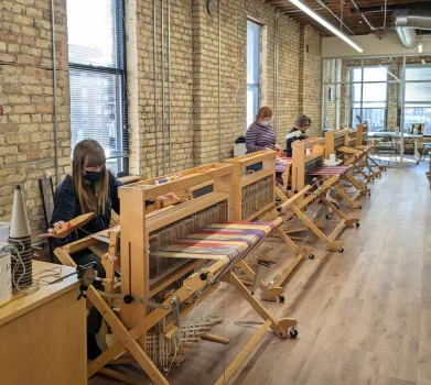 At the Weavers Guild of Minnesota (WGM), we believe weaving, spinning, and dyeing are fundamental to the human experience. Founded in 1940, we are the largest weaving and spinning guild in the US. We offer classes designed for learners of all skill levels, workshops with nationally-recognized instructors, and public talks and exhibitions. We teach both online and in-person. WGM is unique in the region due to its permanent location and vast collection of weaving looms, spinning wheels, fiber processing equipment and array of printed resources. If you want to learn to weave or spin, you've come to the right place!