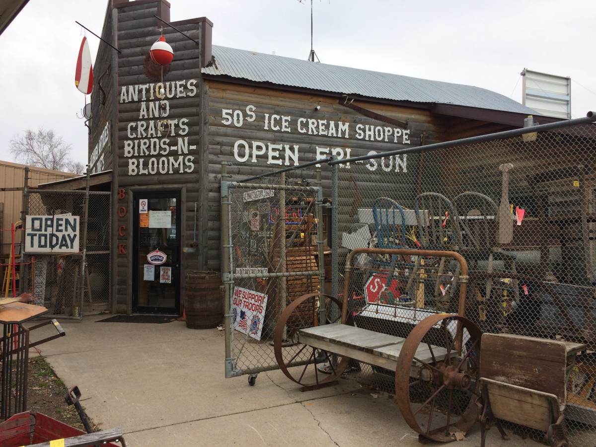 Antiques, collectibles, and cedar crafts. Located in Bock, small town environment! New items put in weekly. Over 1,000 items! Items are indoor and outdoor--We have Bridgeman's ice cream, seasonal, fresh baked waffle cones to serve while you shop. View us on Facebook for pictures of items! Located just off Hwy 23--a stop on your adventures to northern Minnesota!