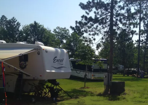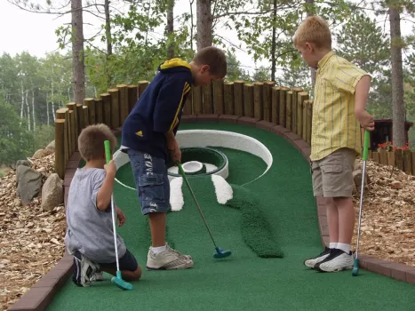 The Brainerd Lakes area's newest RV Park. Extra-Large shady sites on the golf course or pull-thru sites. All sites with full-hookups: sewer, water, 50 amp elec, cable, WiFI, picnic table, fire ring. Executive golf course, miniature golf, maze, driving range. Lodge Rooms (suite w/ kitchen and motel room) also available.