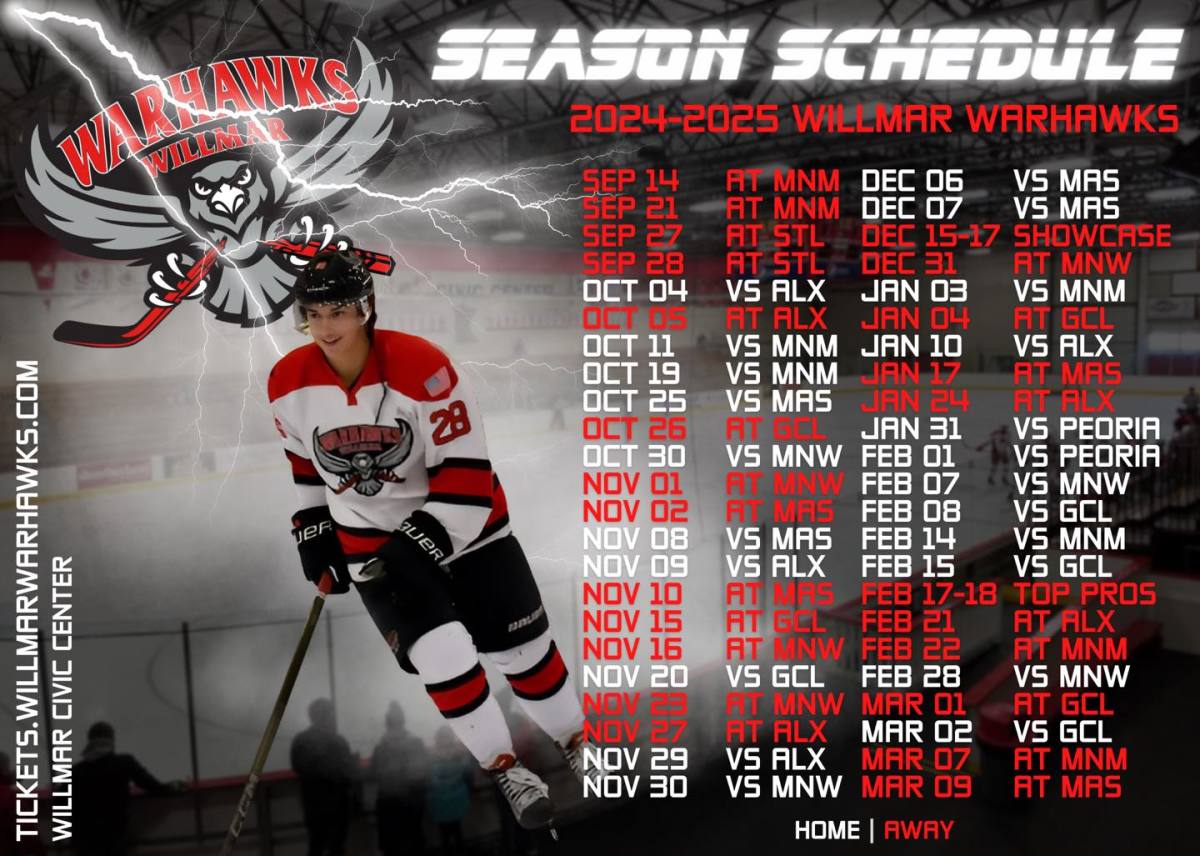 The Willmar WarHawks are a Tier 3 team in the NAHL (North American Hockey League). Home games will be held in the Cardinal Arena of the Willmar Civic Center and take place most often on Friday and Saturday nights at 7:00pm.