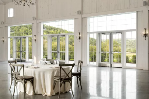 Experience the transition from urban hubbub to country getaway and leave city distractions behind. Invite up to 300 guests to your ceremony held by our stunning vineyard, on the hilltop overlooking our green pastures, or in the original 1873 Historic Barn. Our beautiful new White Willow Barn welcomes you to dinner and dancing with it’s large walls of glass windows & doors that overlook the surrounding countryside.