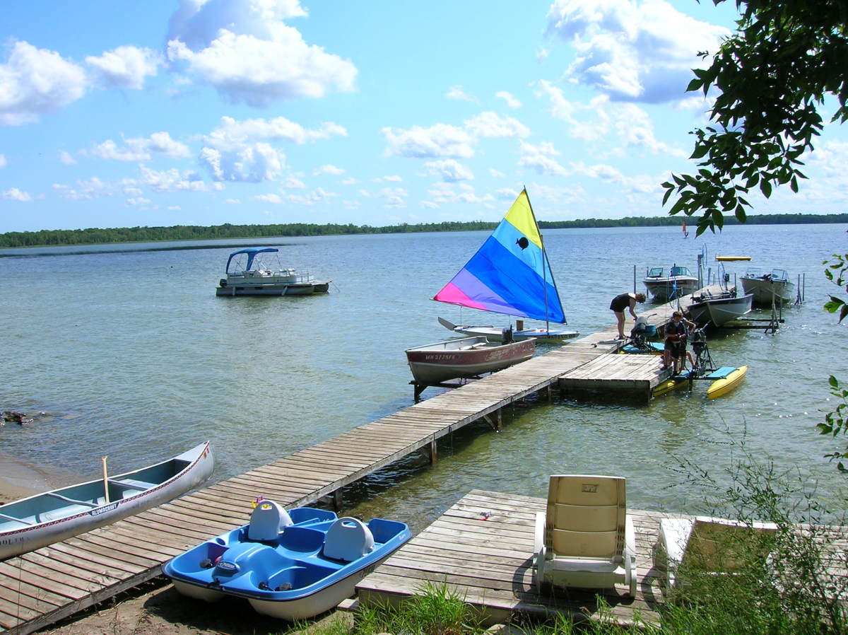 Eight lakeshore housekeeping cottages on north shore of Blanche Lake in a shady park-like setting across the lake from Glendalough State Park. For features, rates and openings, see our website www.woodlawnresort.com. For inquiries please call or email. Each of our eight cottages has a large deck on the lakeside for dining and lounging. Seven hundred feet of lakeshore buffered by a secluded thirteen acre tract of woodland. Deluxe fishing boat with 25 h.p motor, pontoon, standard fishing boats and motors available, boat lifts. Sunfish and Laser sailboats, windsurfers, Hydrobikes, kayaks, paddleboat, stand-up paddleboards. Sand-bottomed swim area, water volleyball, basketball, tetherball, playgrounds, nature trail and indoor recreation room. Golf, riding, dining, shopping, all close by. Canoe Ottertail County's rivers and lakes. Near Fergus Falls, Perham. For more photos and info, please visit our website.