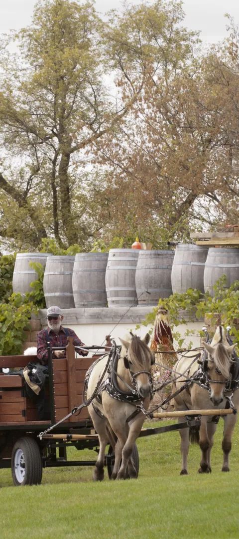 Take a horse-drawn carriage tour of Carlos Creek Winery in Alexandria